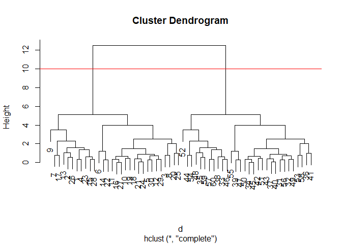 grps <- cutree(hc, h=10)