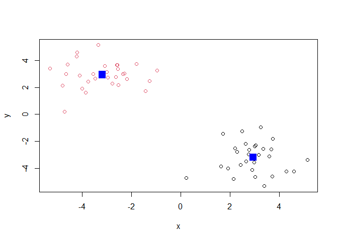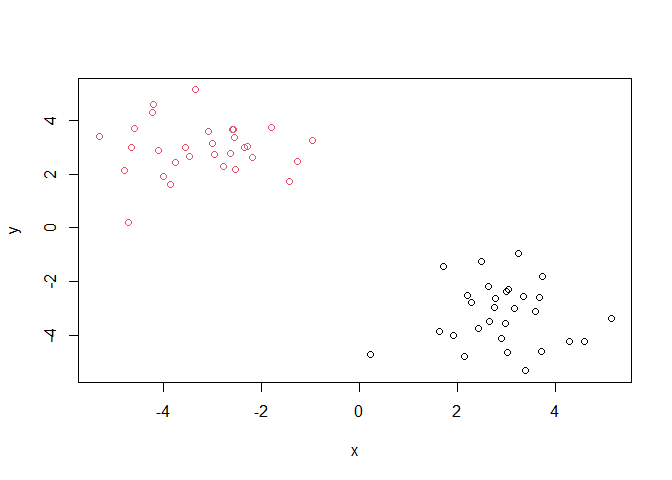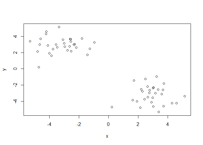 k <- kmeans(x, centers = 2)
